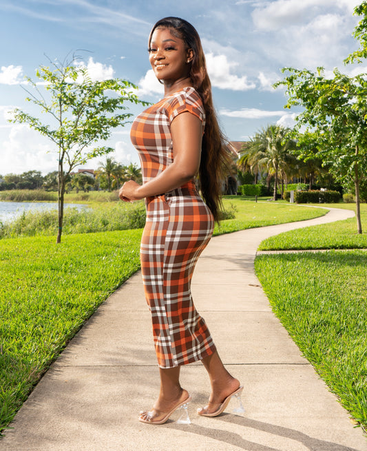 - 40%POLY PLAID MIDI DRESS