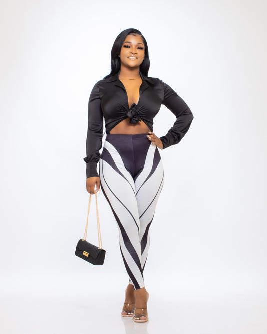 ANITA BLACK TIE CROP TOP WITH MESH LEGGINGS SET
