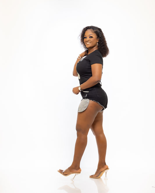 MISS GLITZ DENIM SHORTS (BLUE & WHITE)