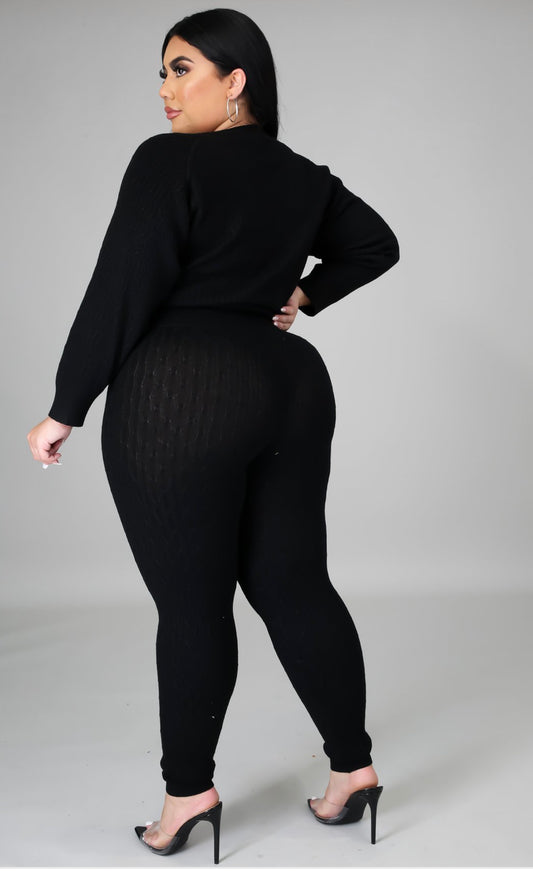 CHIC PLUS SIZE TWO PIECE JOGGER SET (BLACK )