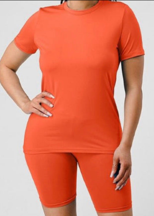 Throw On “and go” Biker Shorts Set Round Neck ( Royal Blue)