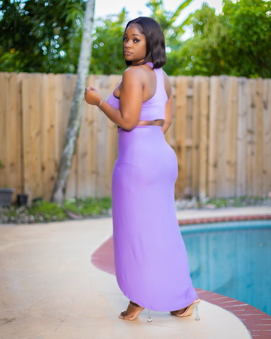 DD TWO PIECE CROP SPLIT FRONT SKIRT SET LAVENDER
