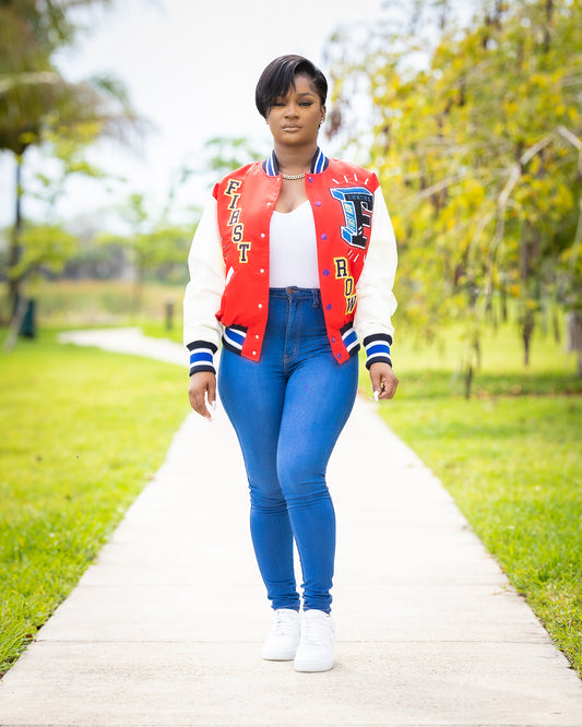 MAL RED VARSITY FAUX LONG SLEEVE JACKET