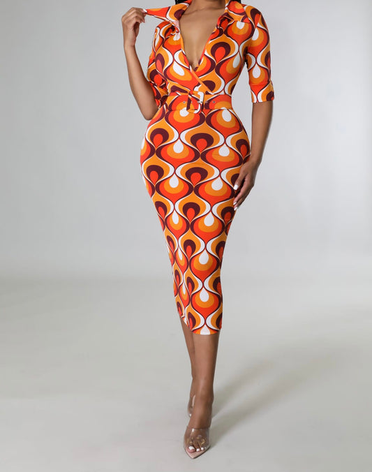 JUST MARLEY MULTI COLOR MIDI LONG SLEEVE ZIPPER DRESS PLUS SIZE