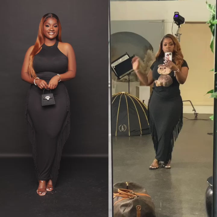 A LITTLE EXTRA BLACK TWO PIECE TASSLE PENCIL SKIRT SET