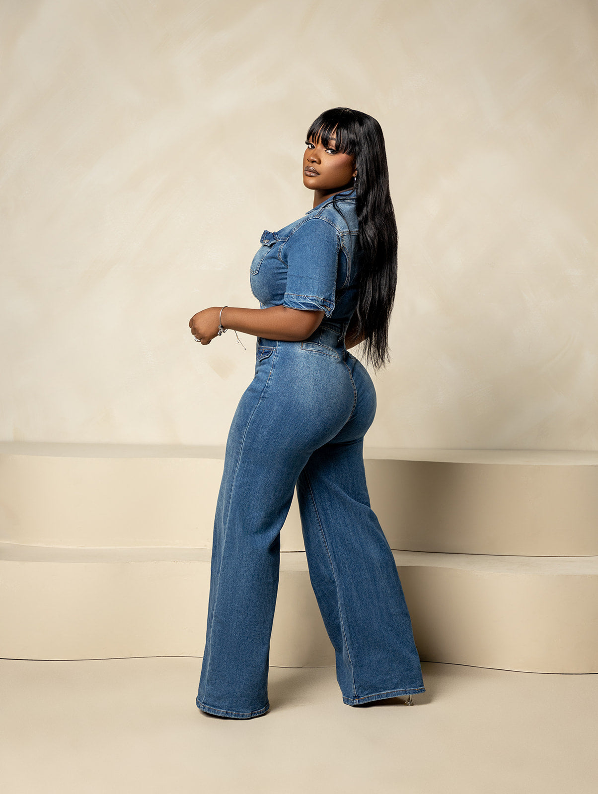 Step up your denim game with our Curve-Hugging Denim Jumpsuit, designed to make you look snatched and stylish in one effortless outfit! 🔥