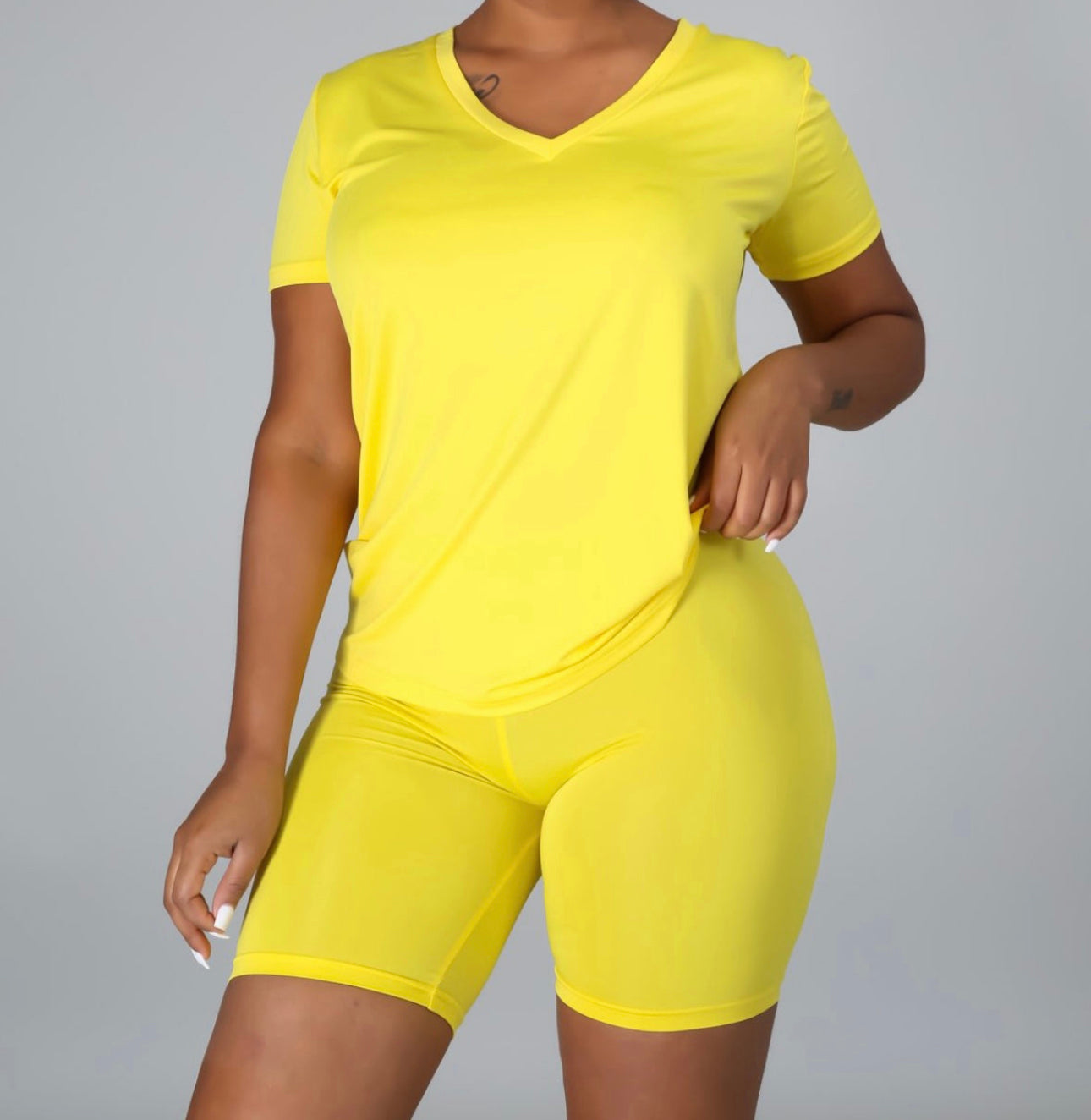 Featuring a vibrant yellow color and a classic V-neckline, it will give you a comfortable fit and a stylish look for any daily errands or warm summer days. With quick-drying material, you stay fashionable and confident in this set.