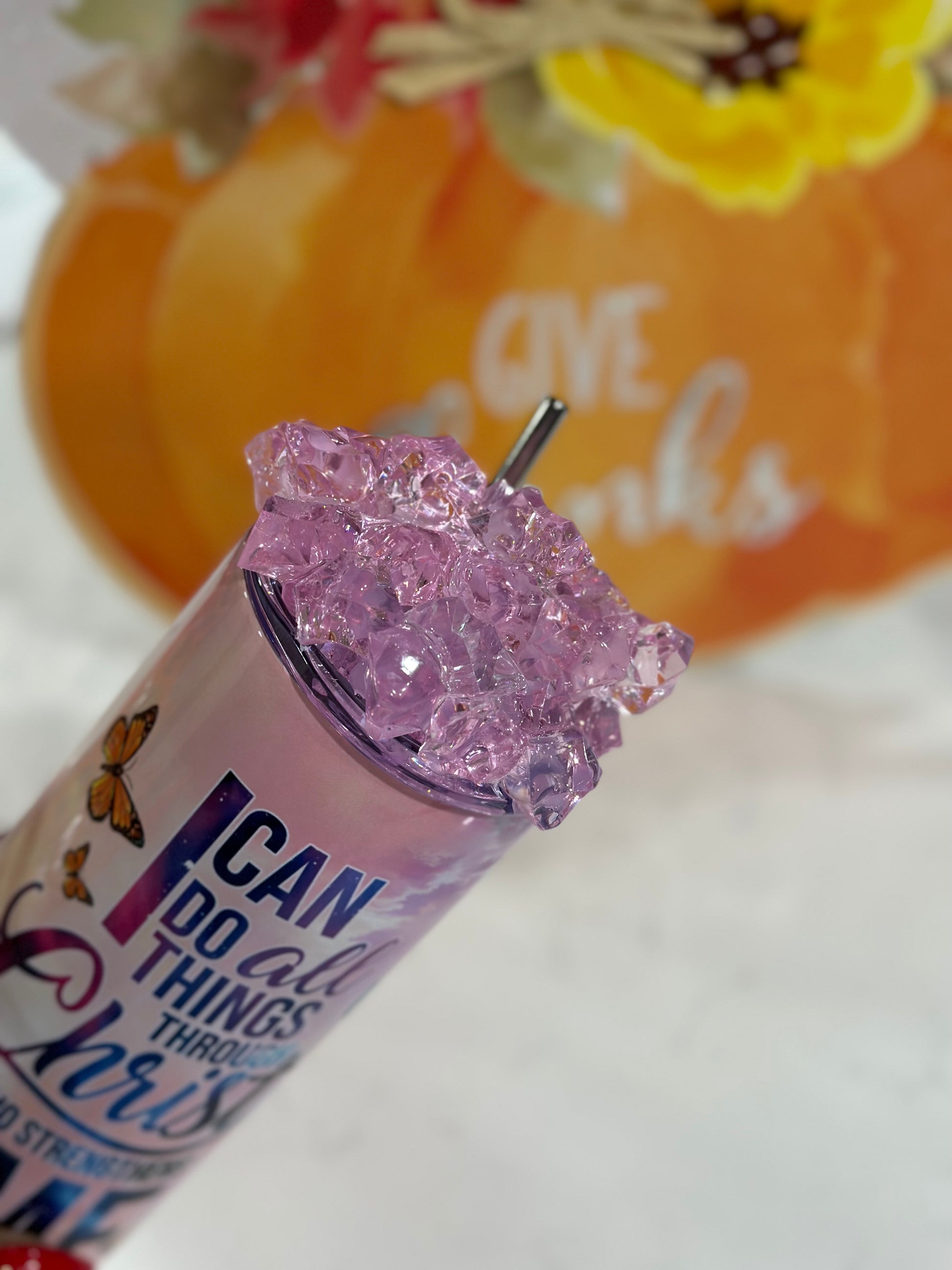 Take your tumbler to the next level with the Full Pink Ice Out 20oz Tumbler Topper. This topper is designed to fit securely onto your tumbler and add extra insulation for keeping drinks hot or cold. Accent your favorite tumbler with this vibrant accessory that will make it stand out.