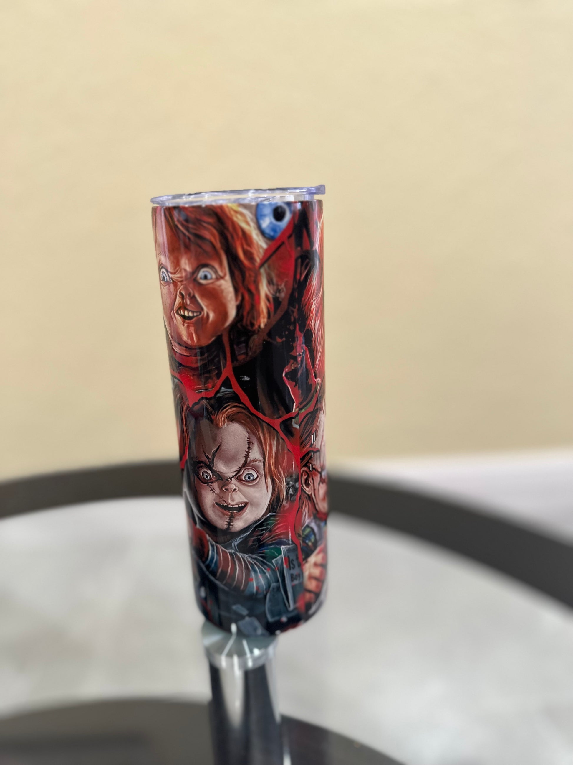 Stay hydrated with this 20oz Horror Movie Tumbler. This must-have accessory features a customized horror movie design and is great for any horror movie fan. Durable and insulated, keep your favorite beverages hot or cold.