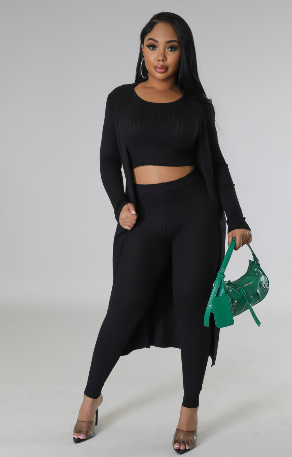 ISSY 3 PIECE KNIT CARDIGAN SET BLACK