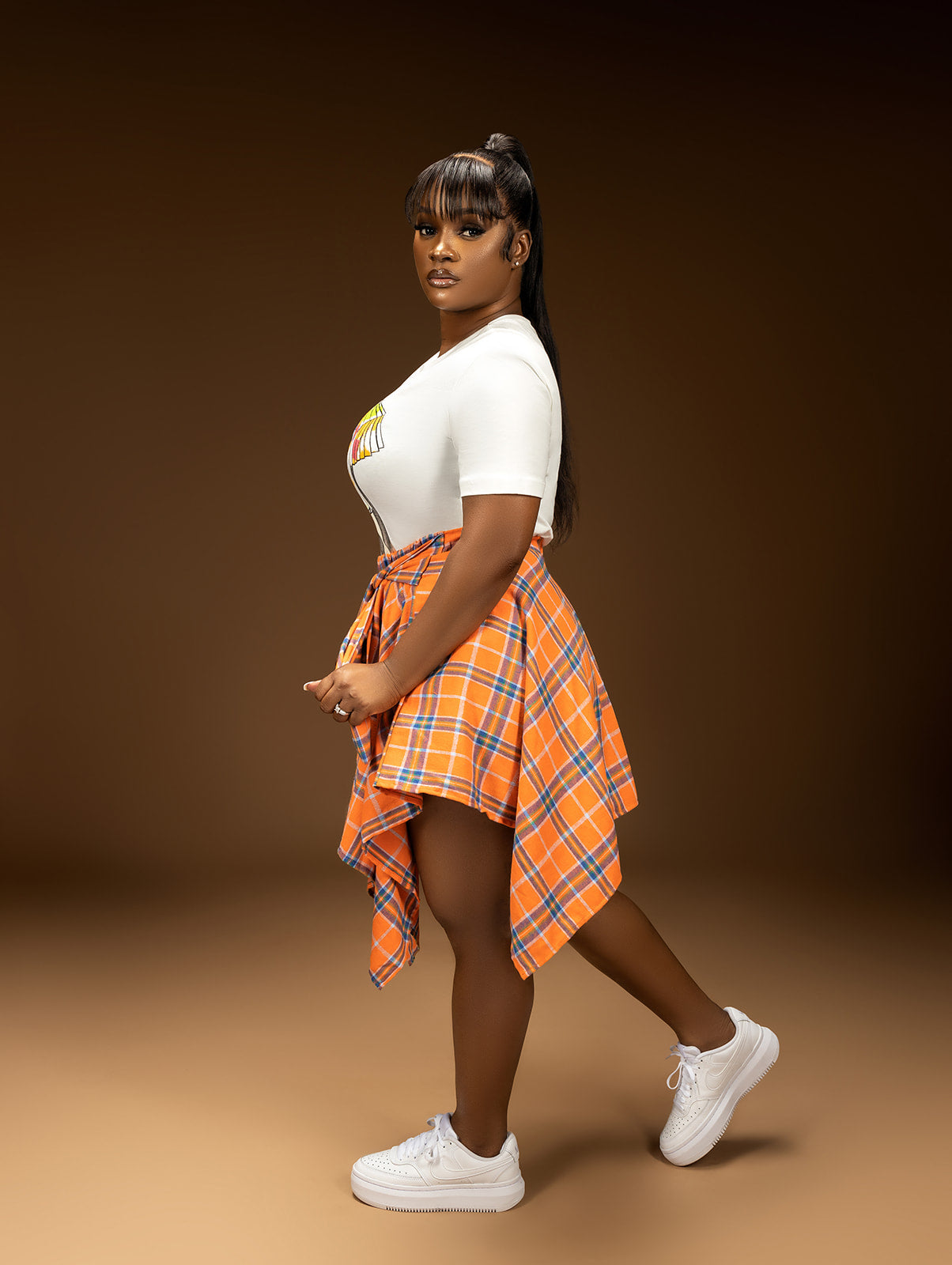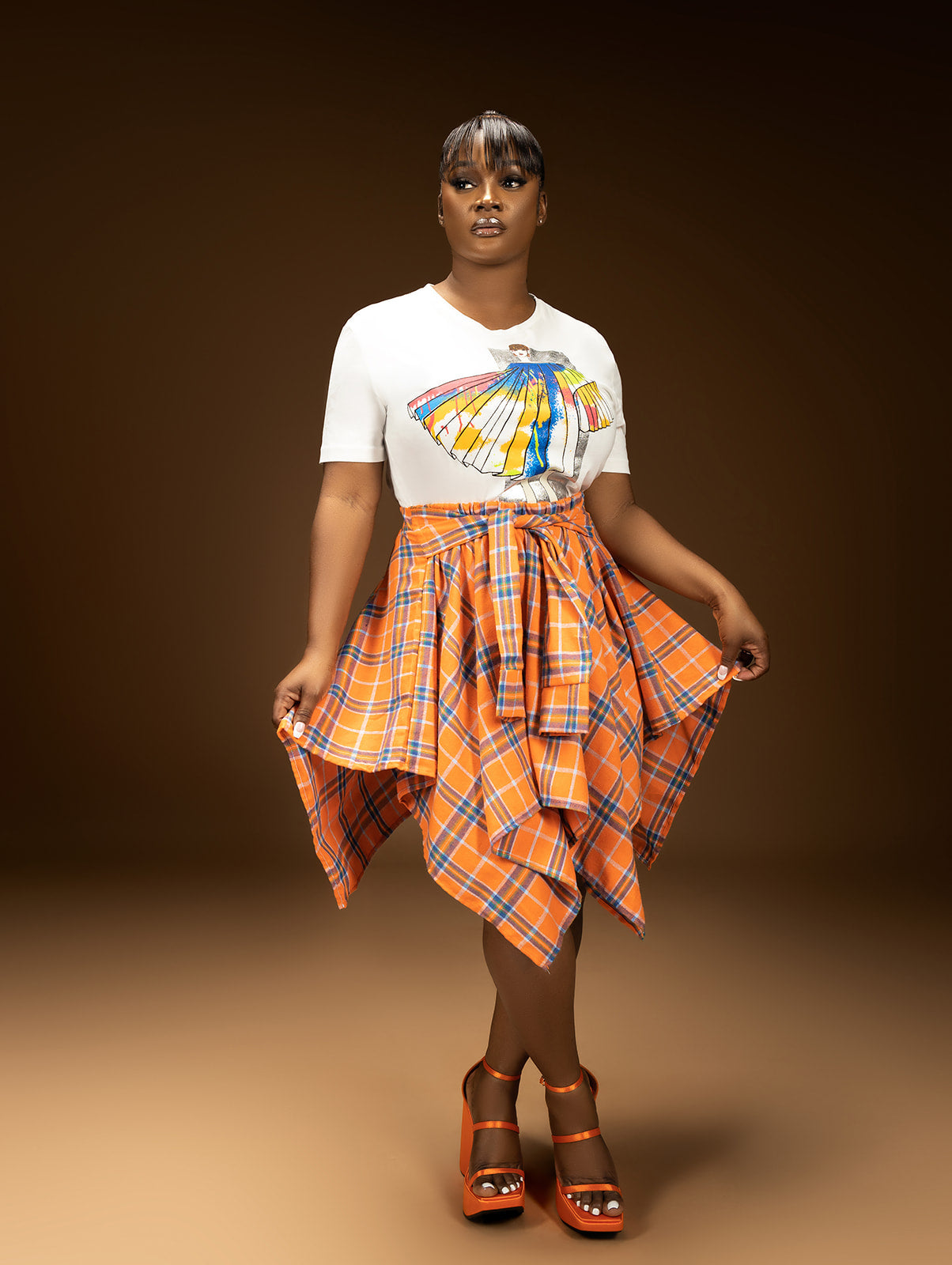 JOESIE ORANGE /BLUE FLANNEL SKIRT