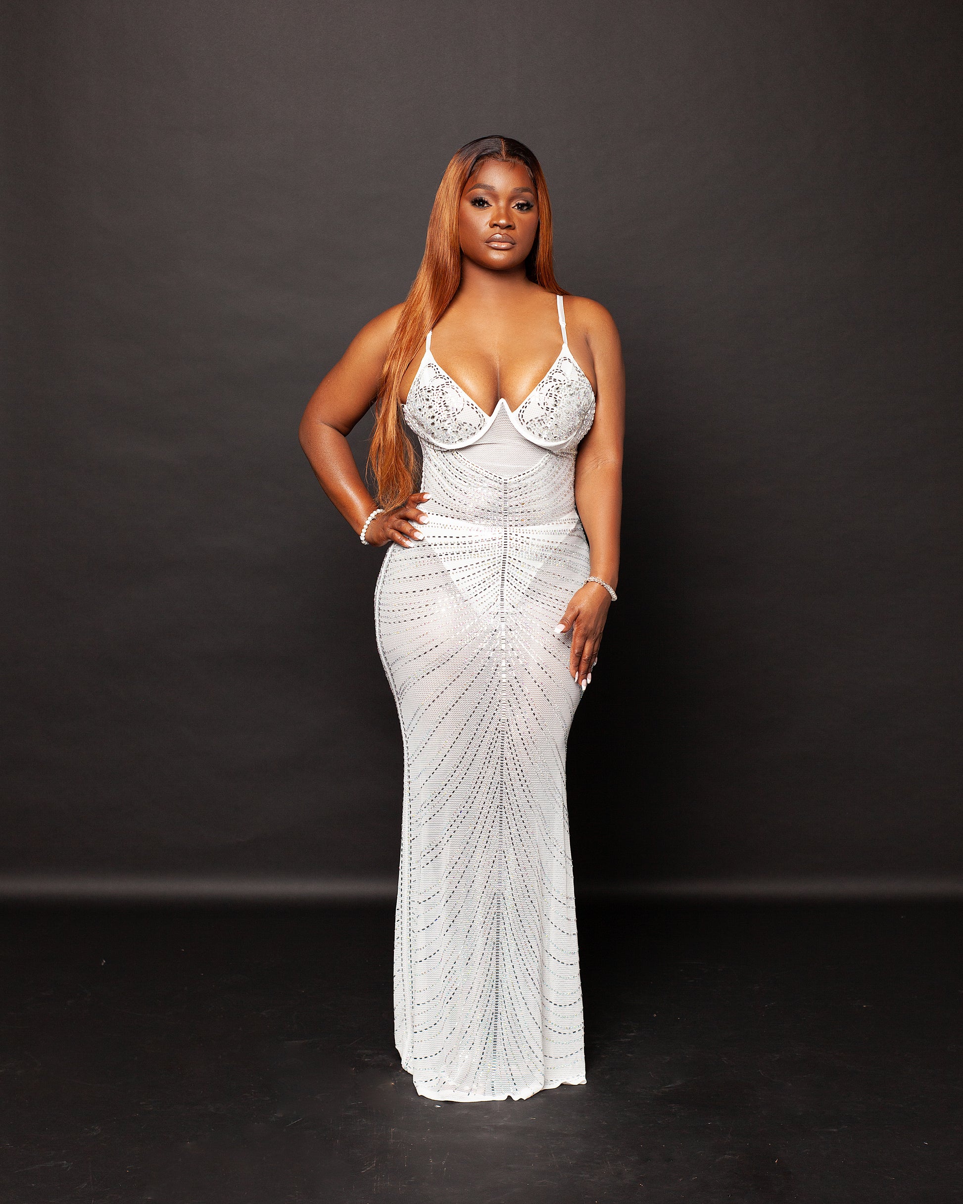 MONICA WHITE MESH RHINESTONE MAXI DRESS