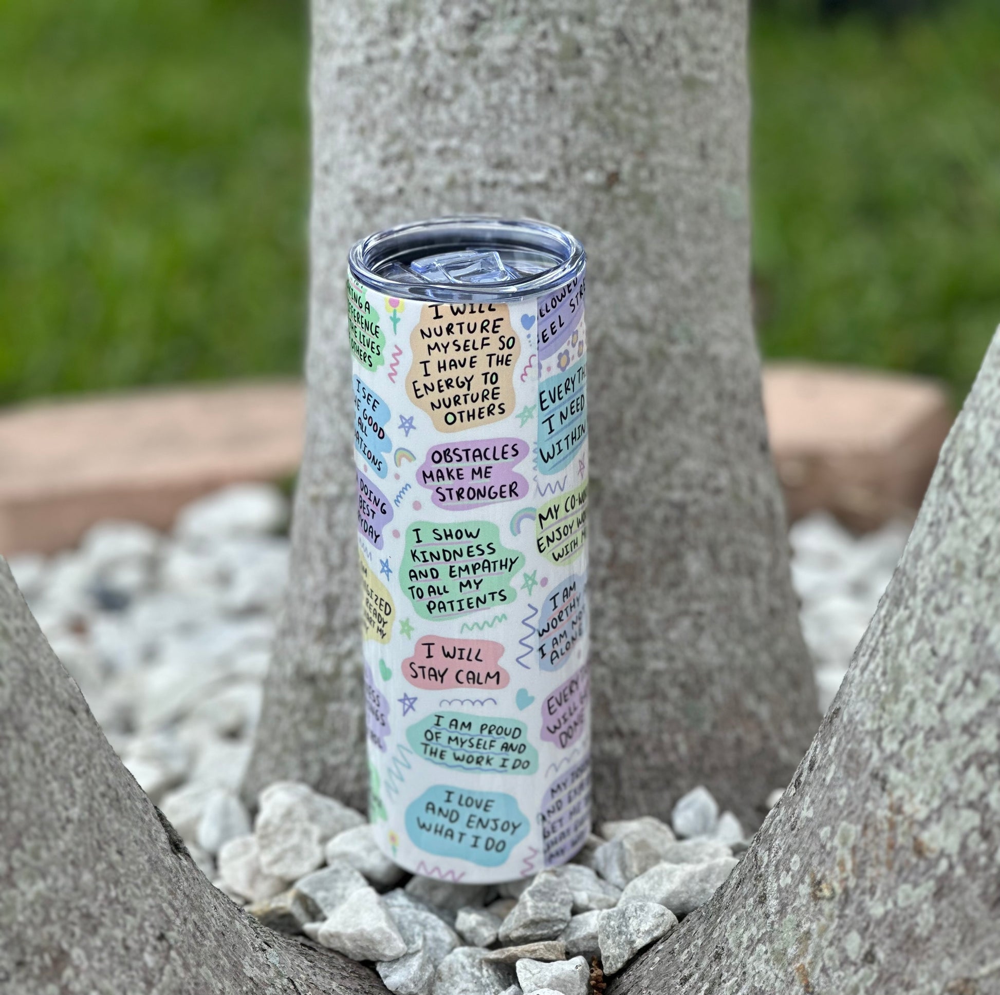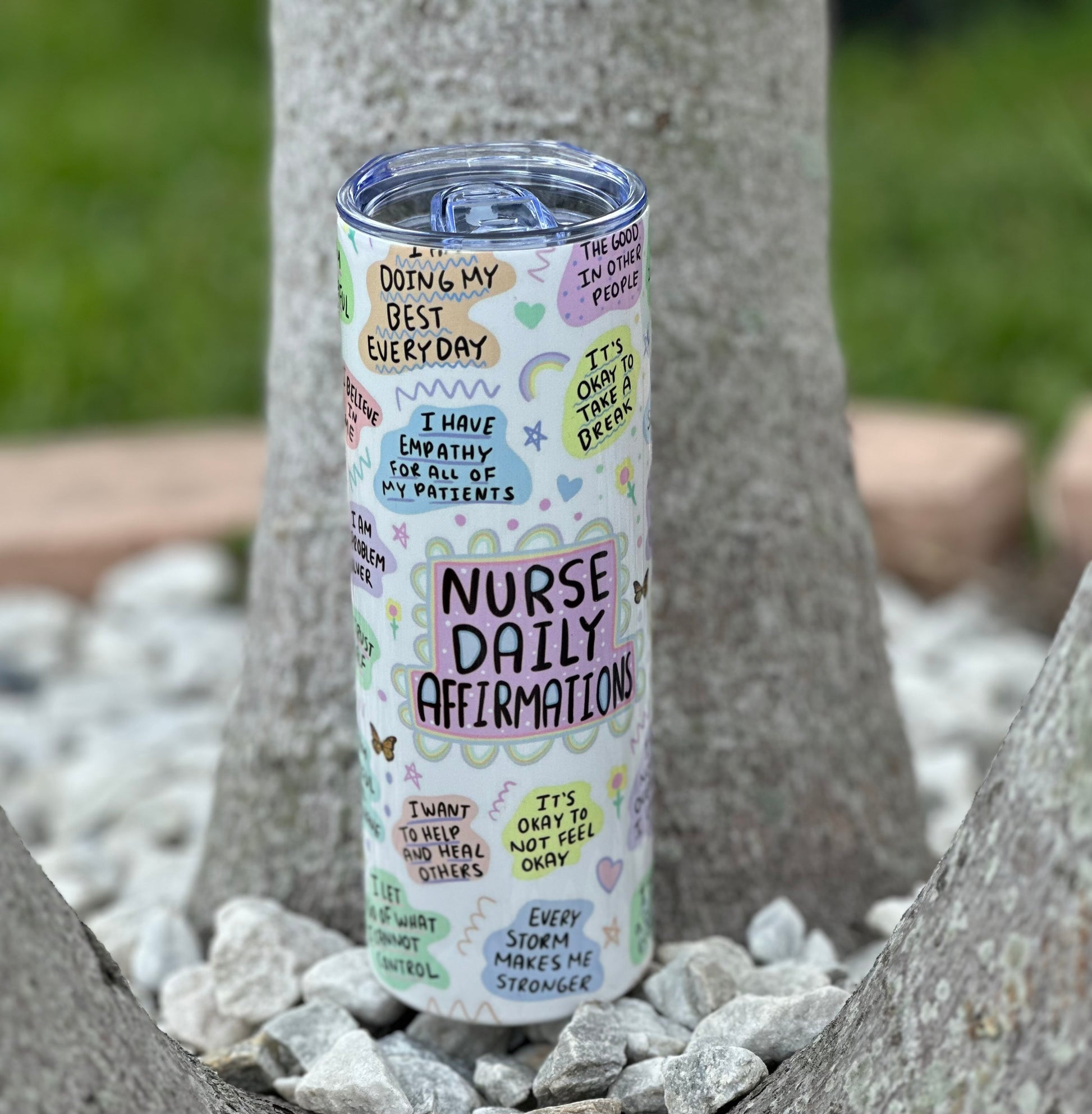Stay hydrated and motivated with this 20oz Nurse Daily Affirmation Tumbler. Featuring a design that reminds you to have courage and strength - every sip is a source of positivity and encouragement. Perfect for the busy nurse who needs to stay nourished and motivated on the job.