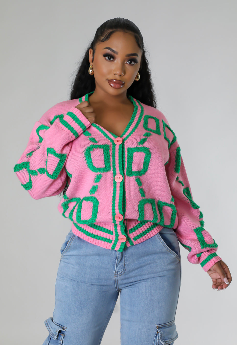 She Doing Her Pink/Green Knit Top