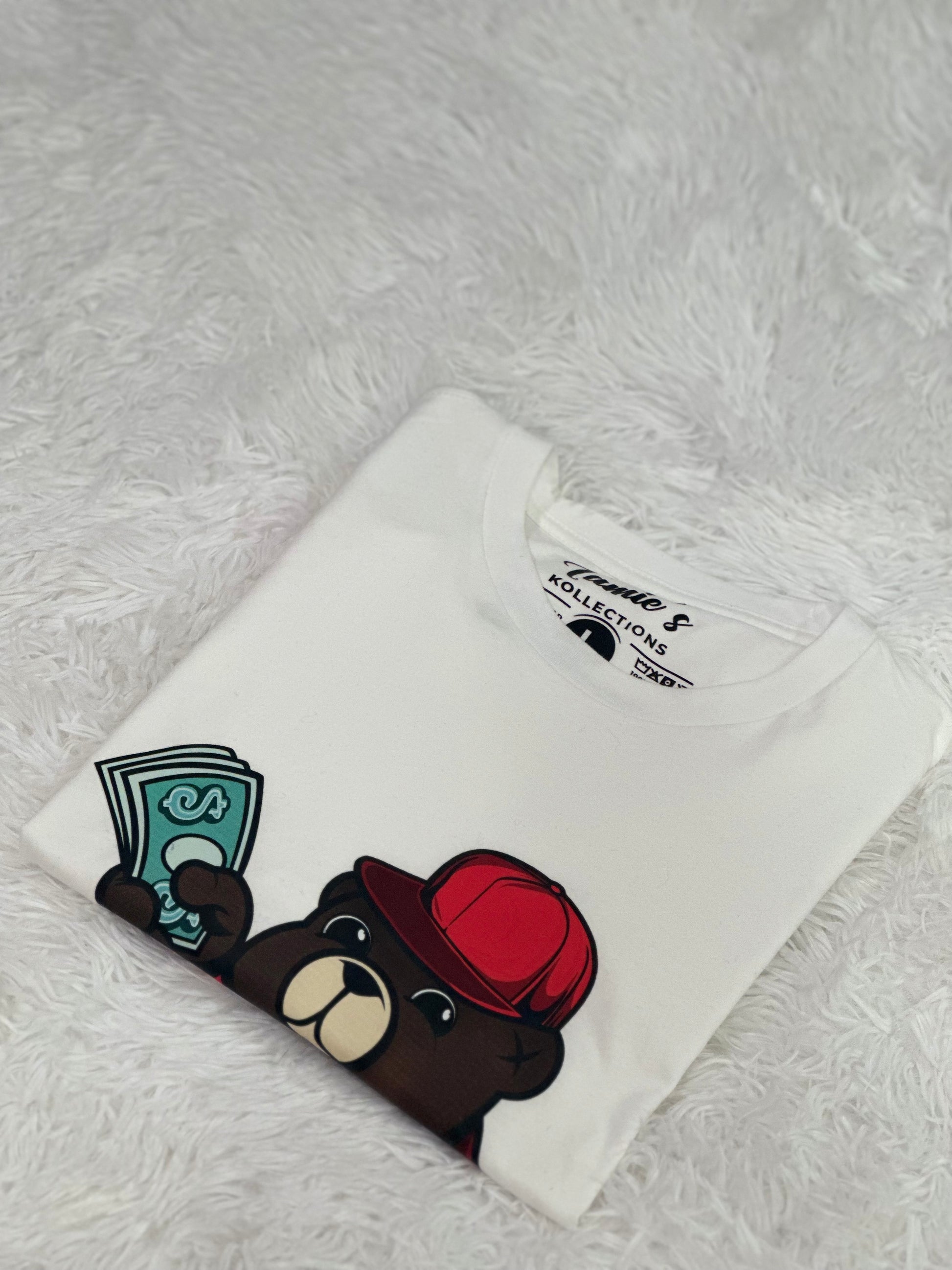Torie Unisex Round Neck Bear Graphic T- Shirt (White)