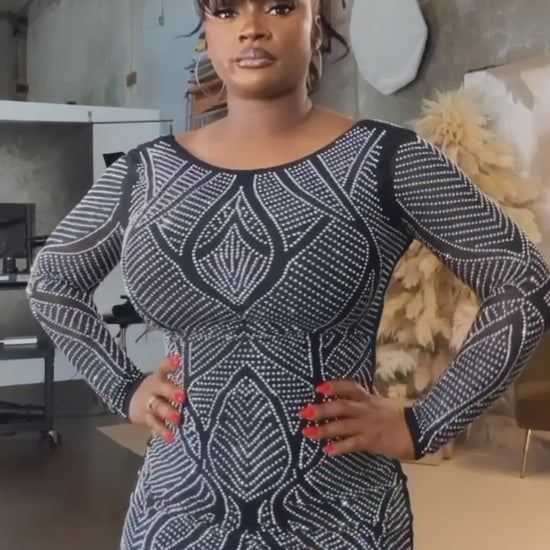 WILO LONG SLEEVE BLACK MINI RHINESTONES DRESS